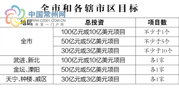 | 常州出台“重大项目突破年”方案 各地目标 |
