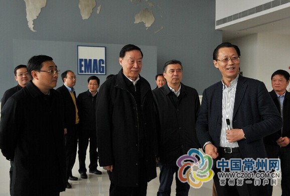 市委书记阎立、市长费高云等市领导陪同江苏省委书记罗志军视察埃马克(中国)机械有限公司。 张海韵 摄