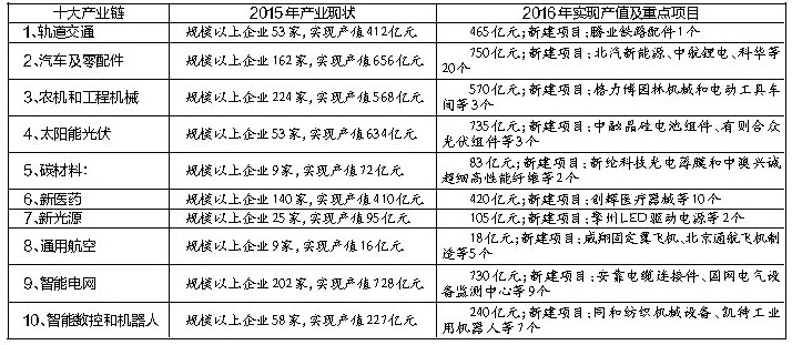 | 2016年常州十大产业链主要目标和推进重点 |