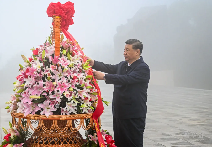 7月7日下午,习近平总书记在山西省阳泉市考察。他来到百团大战纪念碑广场,向百团大战烈士敬献花篮,参观百团大战纪念馆,缅怀抗战烈士英雄事迹,重温中国共产党领导抗日军民同仇敌忾、勇御外侮的光辉历史,了解当地开展革命历史教育、传承弘扬伟大抗战精神等情况。